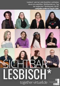 Unsere diesjährige Plakatkampagne anlässlich des “lesbian visibility days” ist von unseren besucher:innen so gestaltet worden, dass sie im gesamten Jahr für mehr Sichtbarkeit sorgen kann.