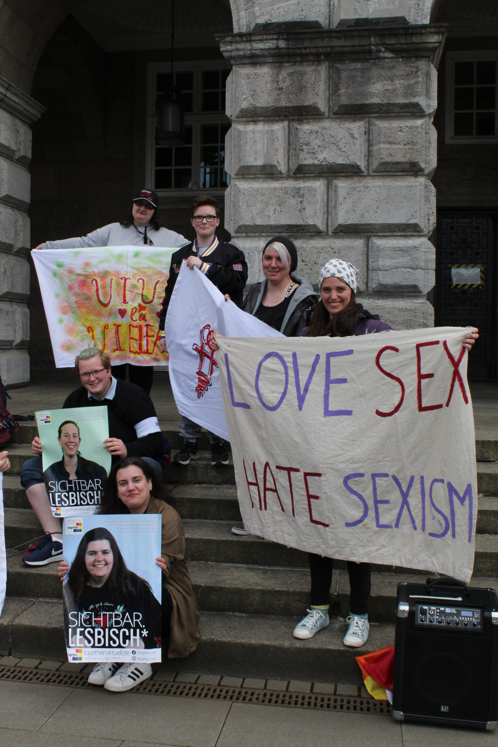 Von 16:30 bis 18:00 Uhr demonstrierte eine kleine Gruppe mutiger junger Frauen für die Belange aller frauenliebender